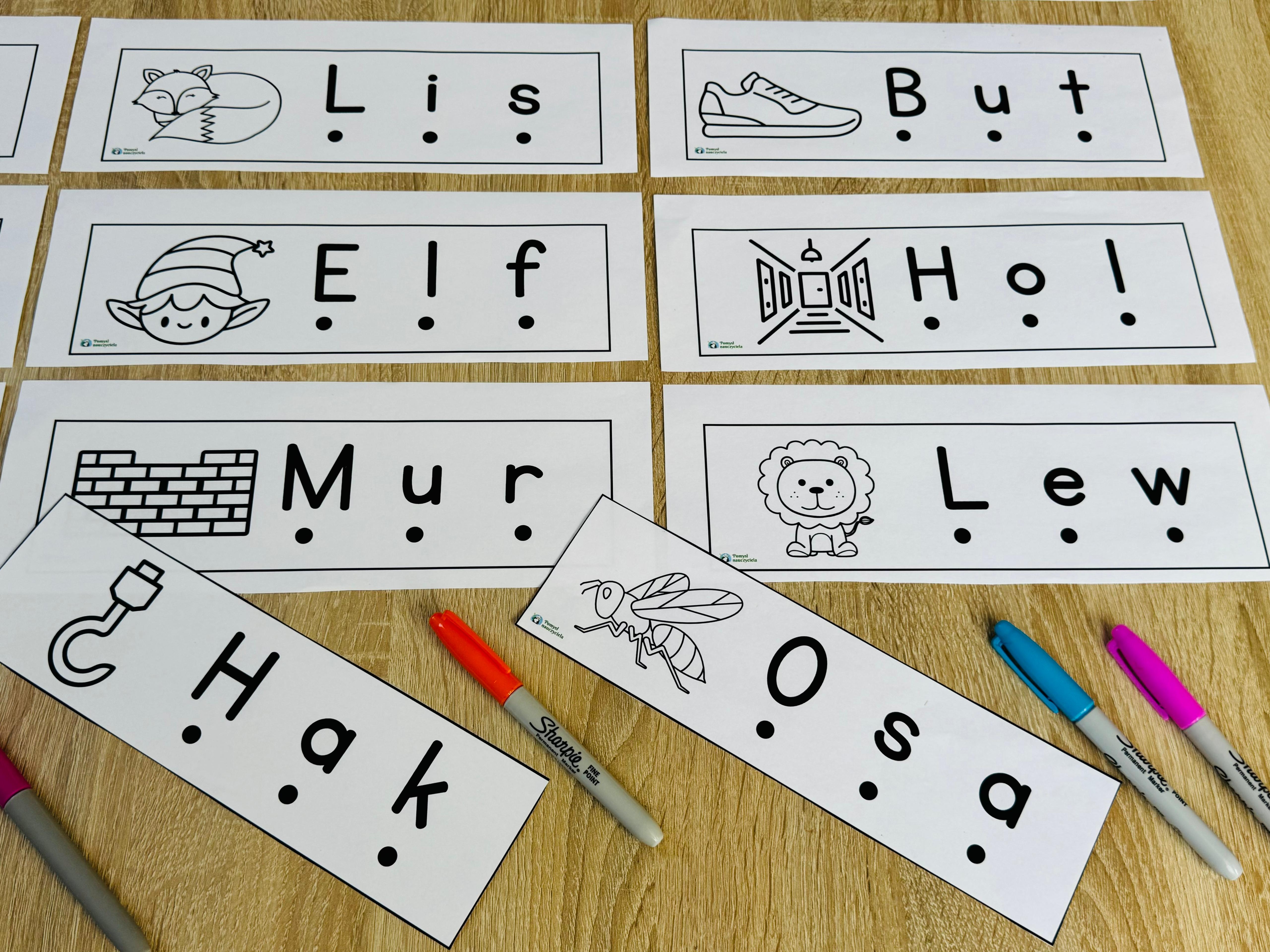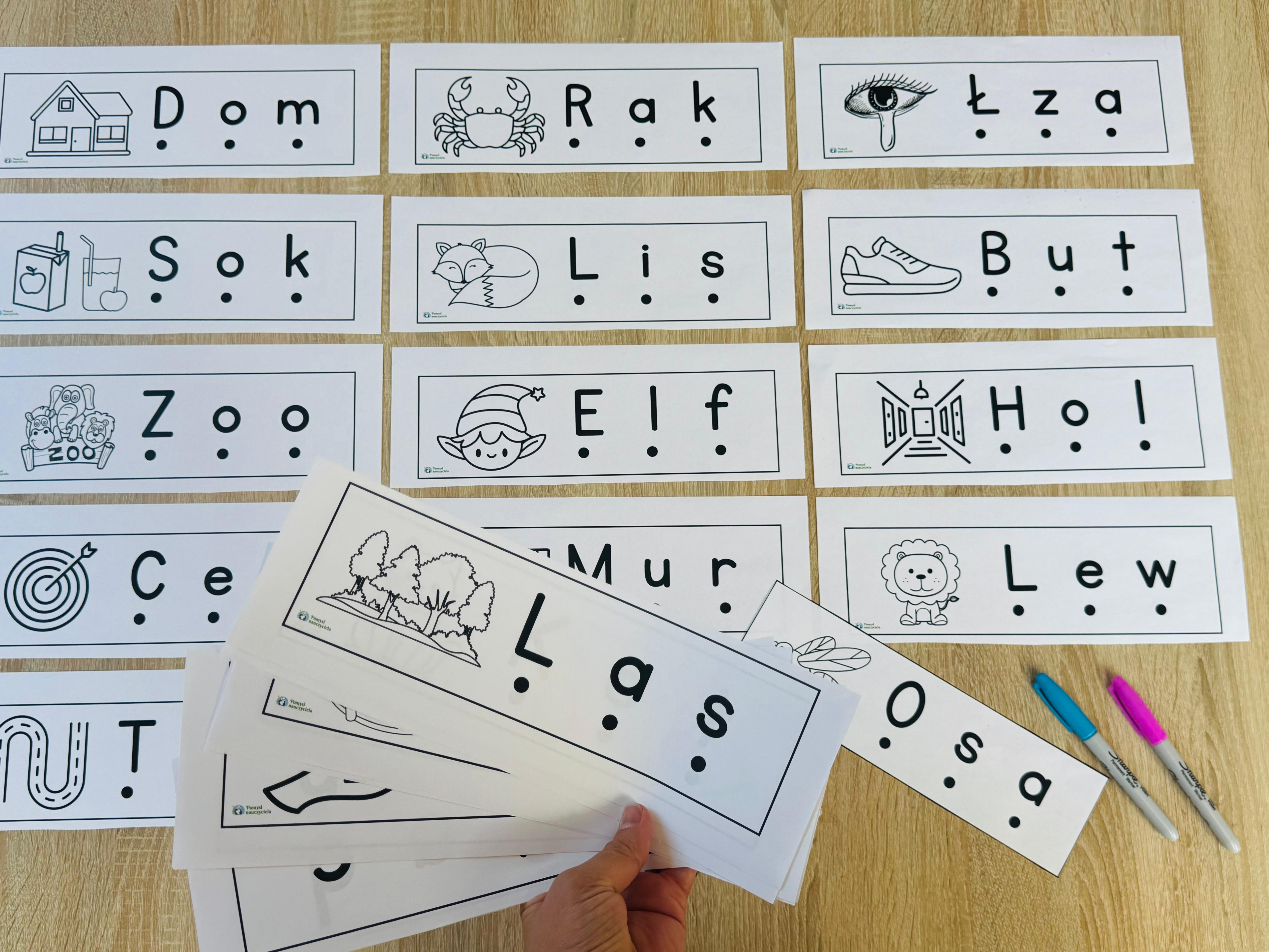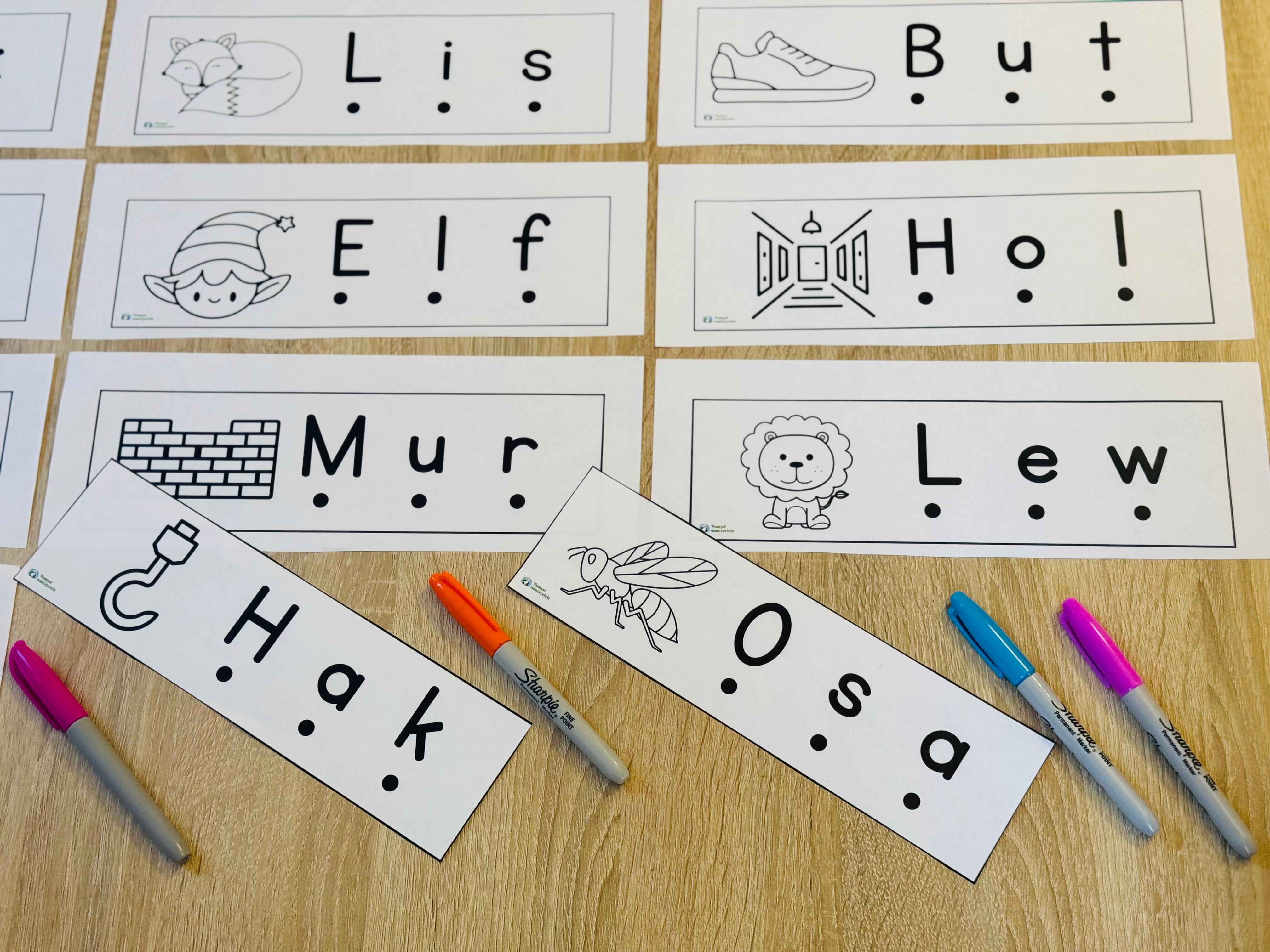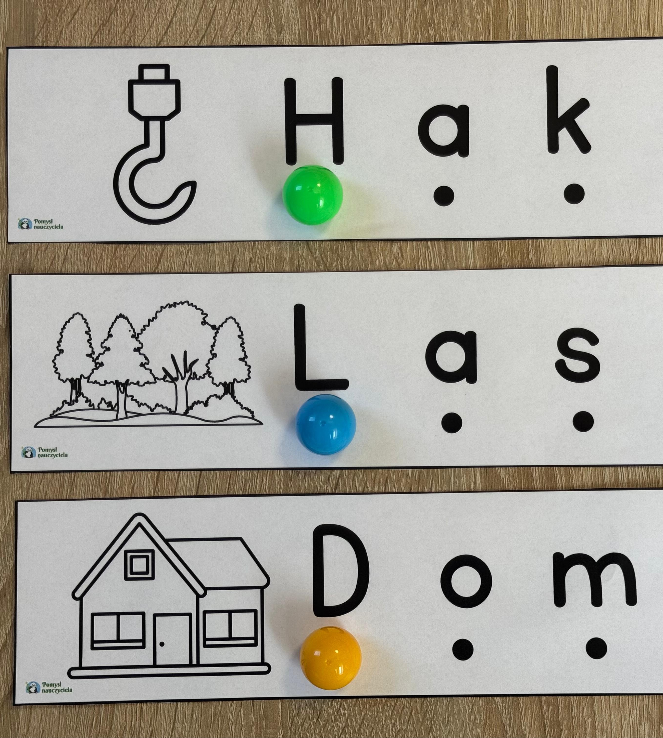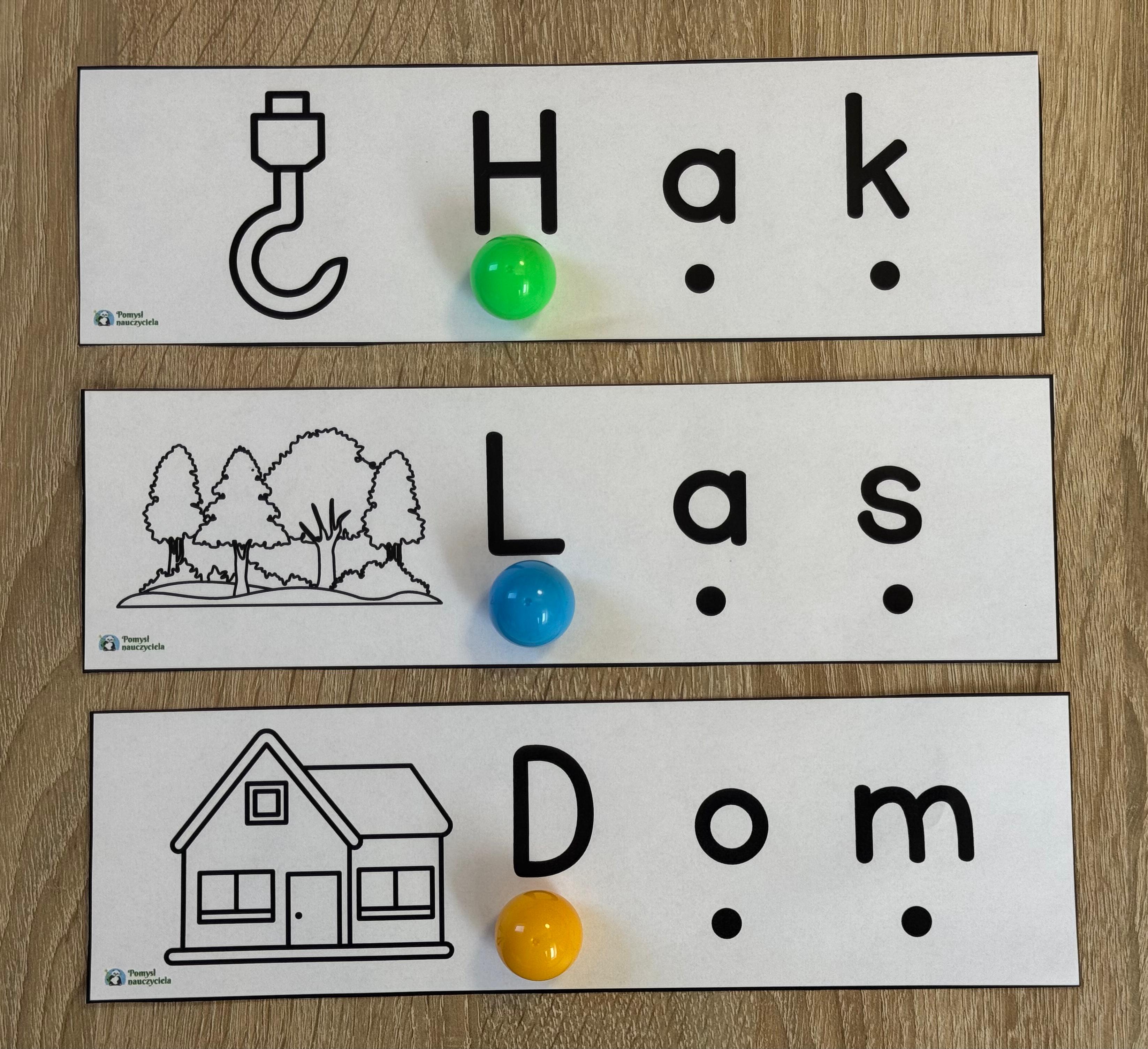 NAUKA GŁOSKOWANIA 3-LITEROWYCH WYRAZÓW - 26 OBRAZKÓW