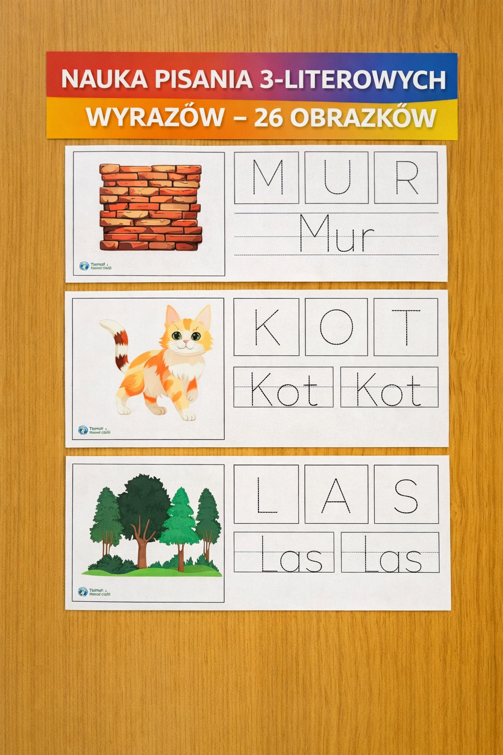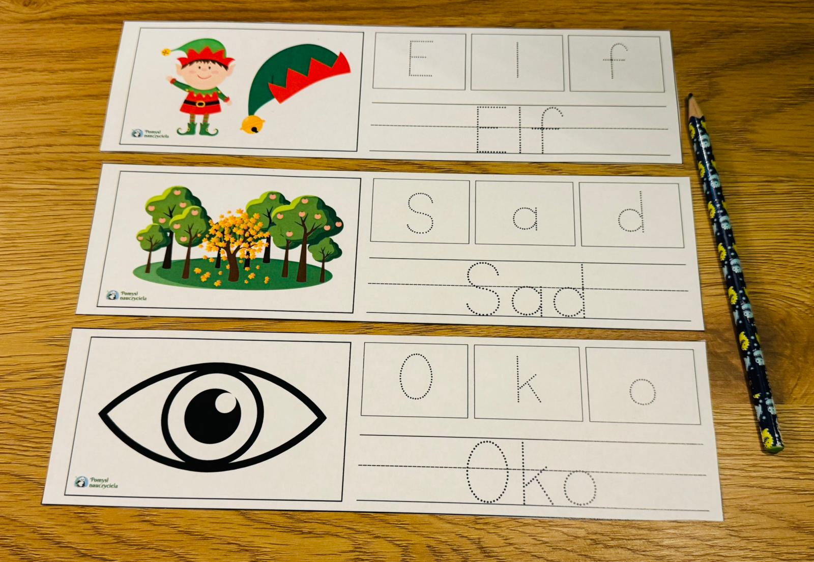 NAUKA PISANIA 3-LITEROWYCH WYRAZÓW - 26 OBRAZKÓW