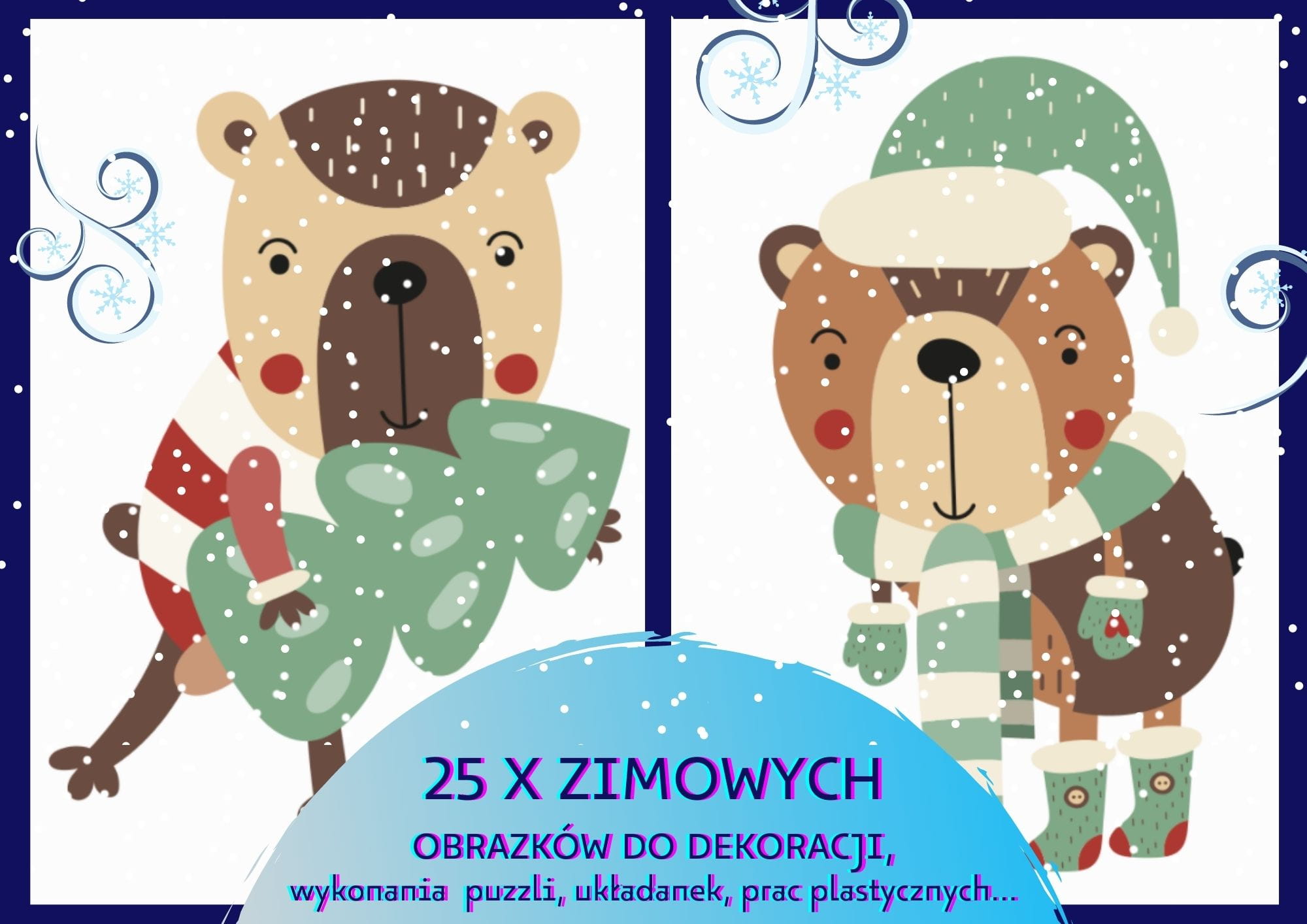 ZIMOWE OBRAZKI TEMATYCZNE DO DEKORACJI, PUZZLE, UKŁADANKI