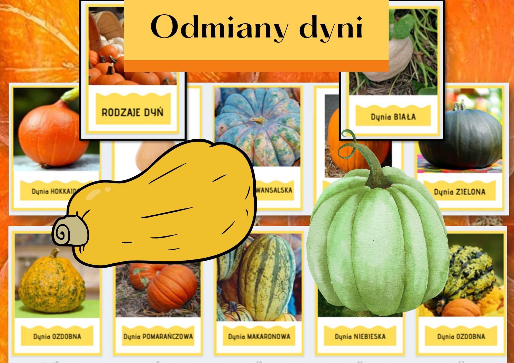 Zestaw składa się z 12 obrazków z DYNIAMI w roli głównej. Obrazki należy wyciąć i zalaminować, by posłużyły nam dłużej. Są to karty obrazkowe z podpisami. Posiadają piękną, oryginalna grafikę, przyjazną dla dziecka i przyciągającą jego uwagę oraz zainteresowanie. . Na każdym obrazku znajduje się inna odmiana dyni.Podczas tych działań uczy się różnych nazw dyni oraz ćwiczy pamięć poznawczą. Karty można wykorzystać do różnych, jesiennych zabaw.