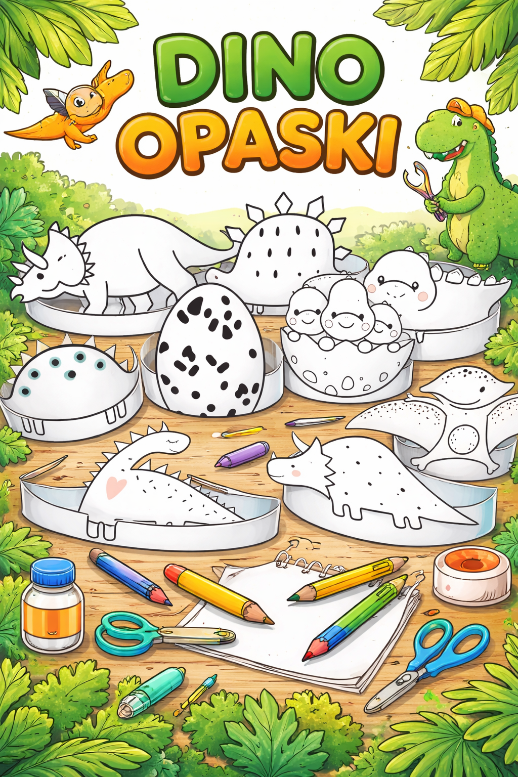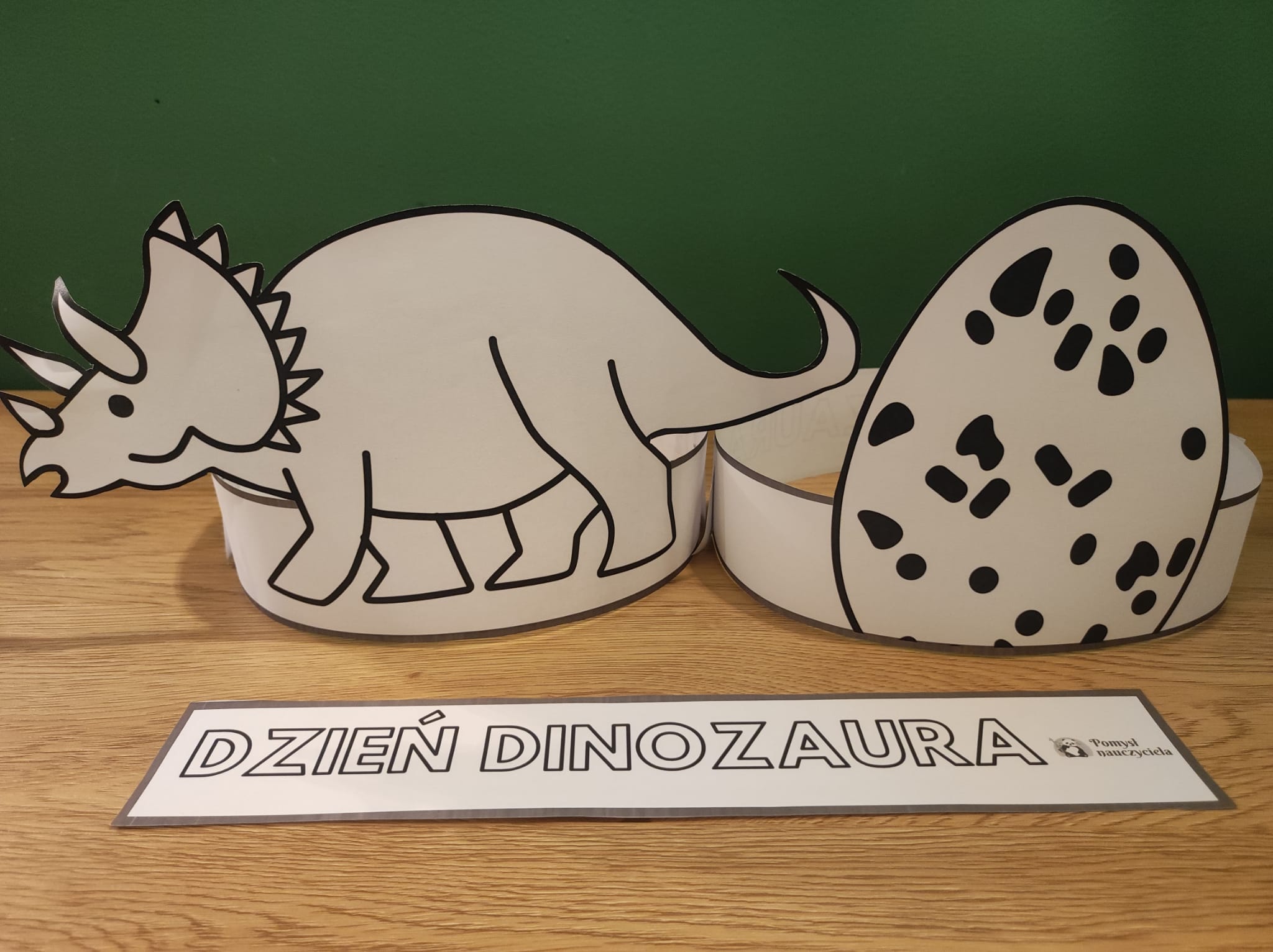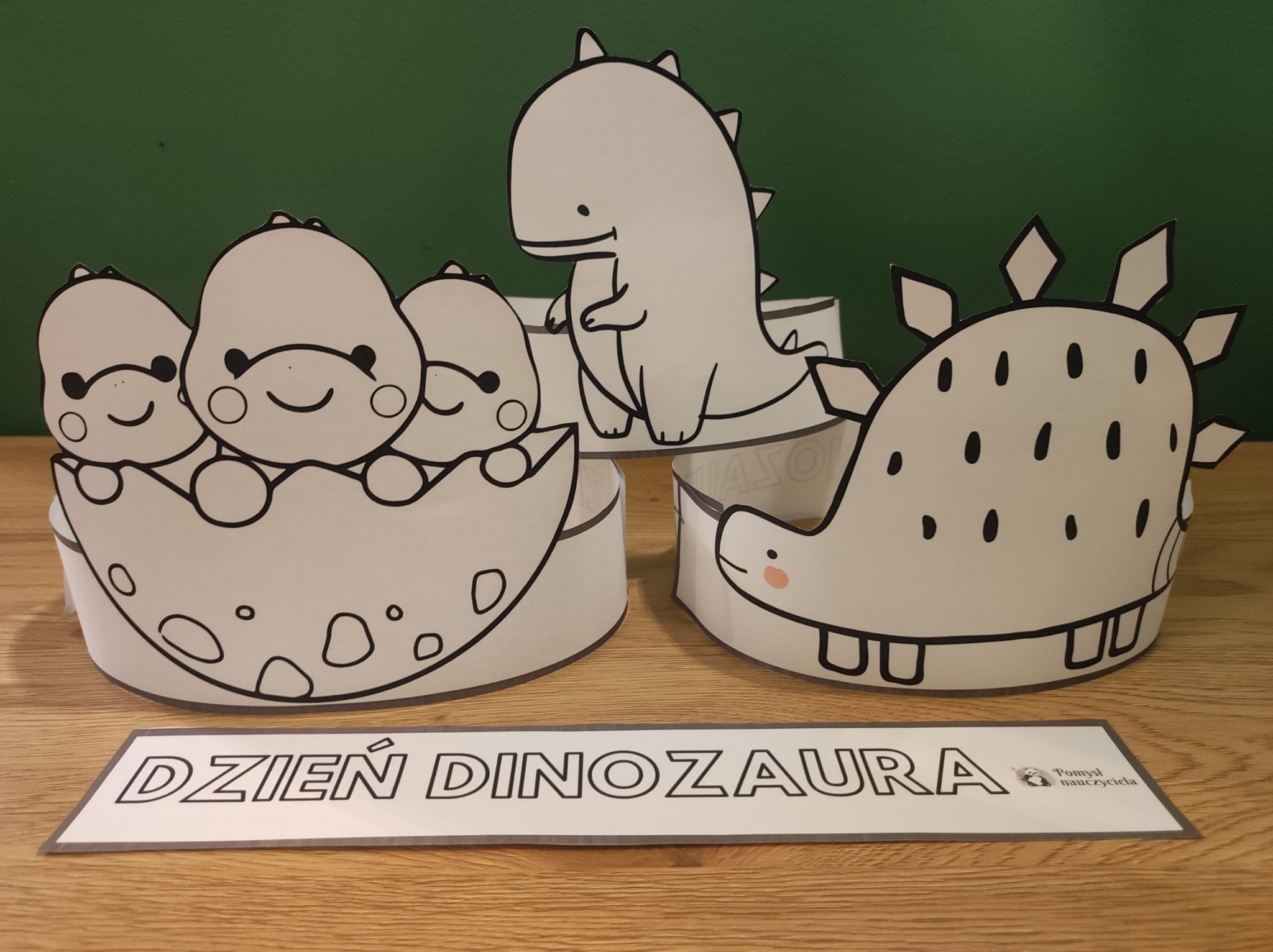 Dzieci mogą samodzielnie wycinać opaski i kolorować. Na każdej opasce znajduje się napis, który dzieci mogą pokolorować. Opaski uatrakcyjnią przebieg DNIA DINOZAURA.