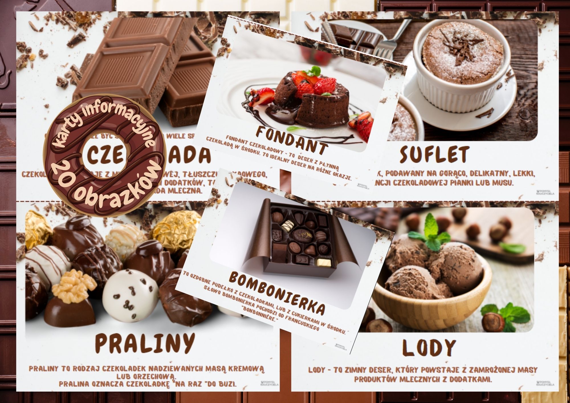 Pakiet DZIEŃ CZEKOLADY ma celu wspieranie nauczycieli i rodziców w procesie edukowania dzieci w wieku przedszkolnym i wczesnoszkolnym. Dla prawidłowego rozwoju dziecka niezbędne jest dostarczanie mu odpowiedniej ilości bodźców, dlatego należy łączyć zabawę z nauką. Treści zawarte w projekcie rozwijają funkcje odpowiedzialne za powodzenie w przyszłej nauce czytania i pisania. Inspirują dzieci do twórczych, kreatywnych aktywności w oparciu o wybrany krąg tematyczny.
