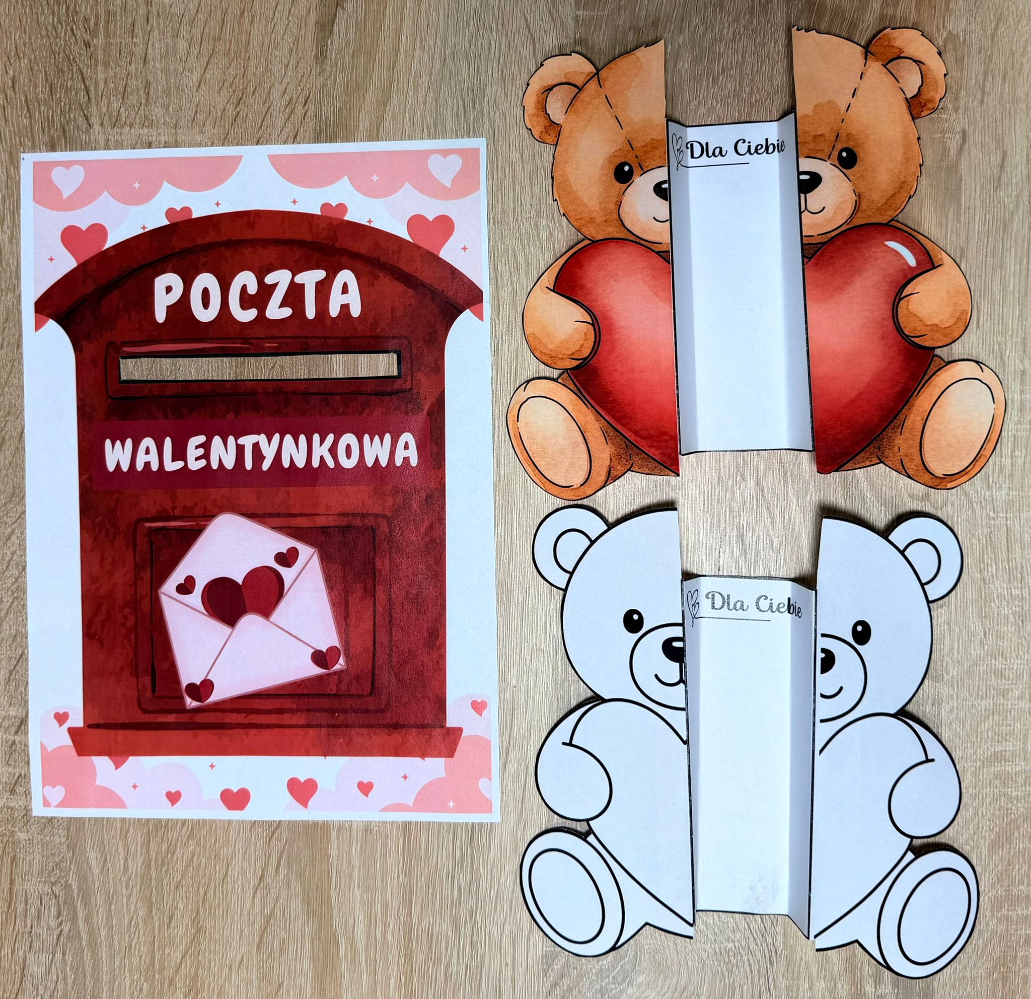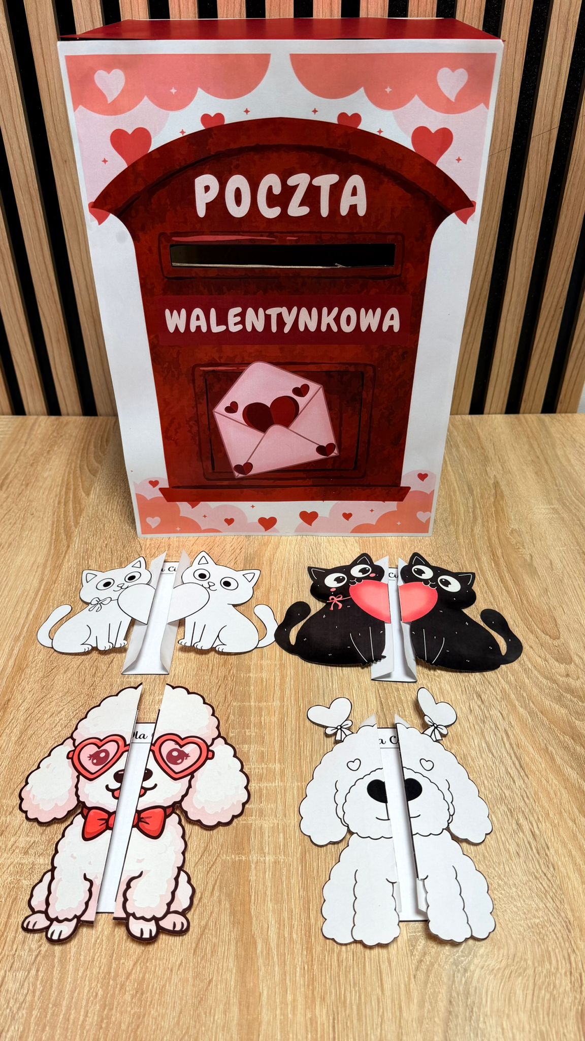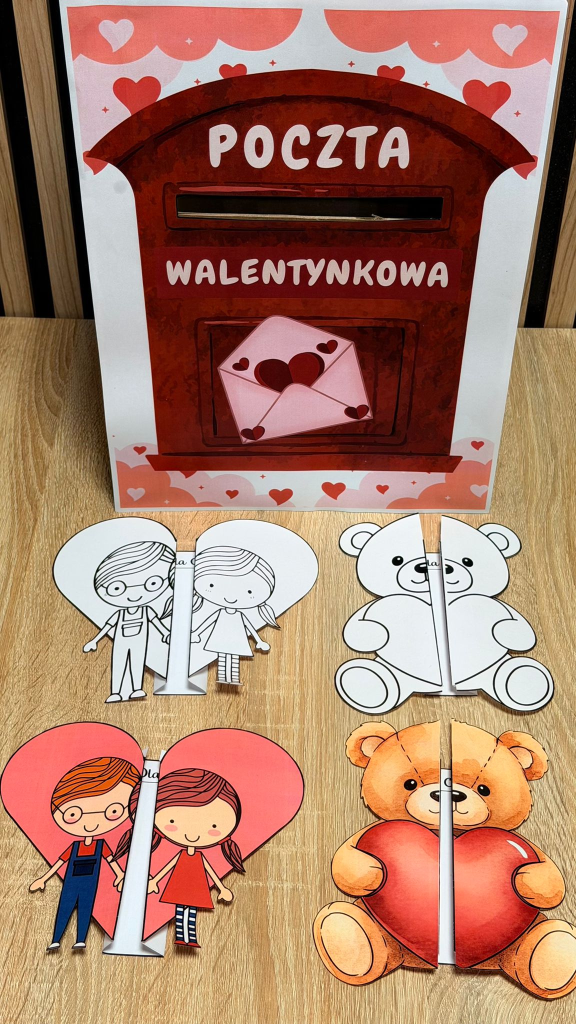 POCZTA WALENTYNKOWA SKRZYNKA + KARTKI SKŁADANKI 17 STRON