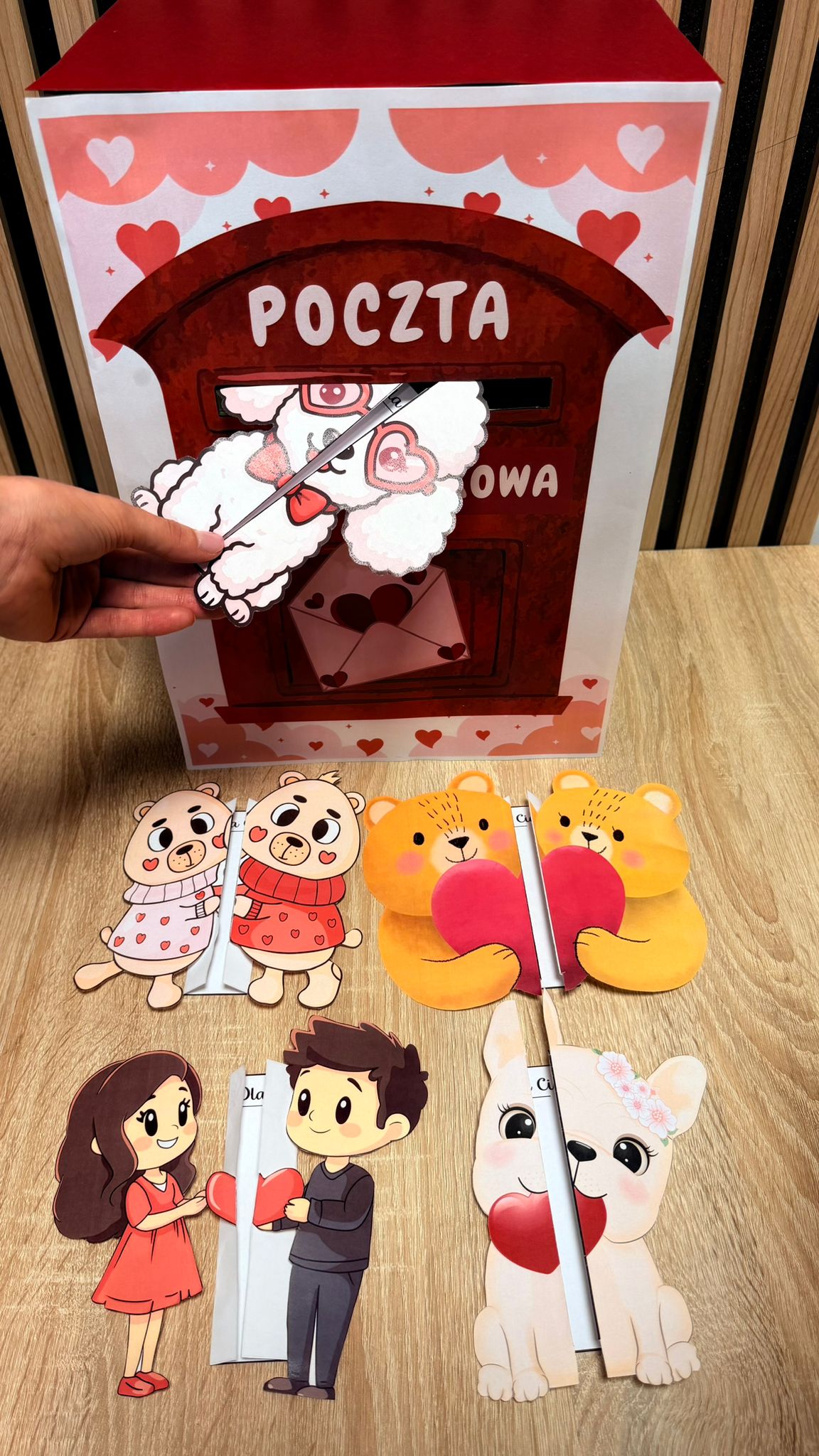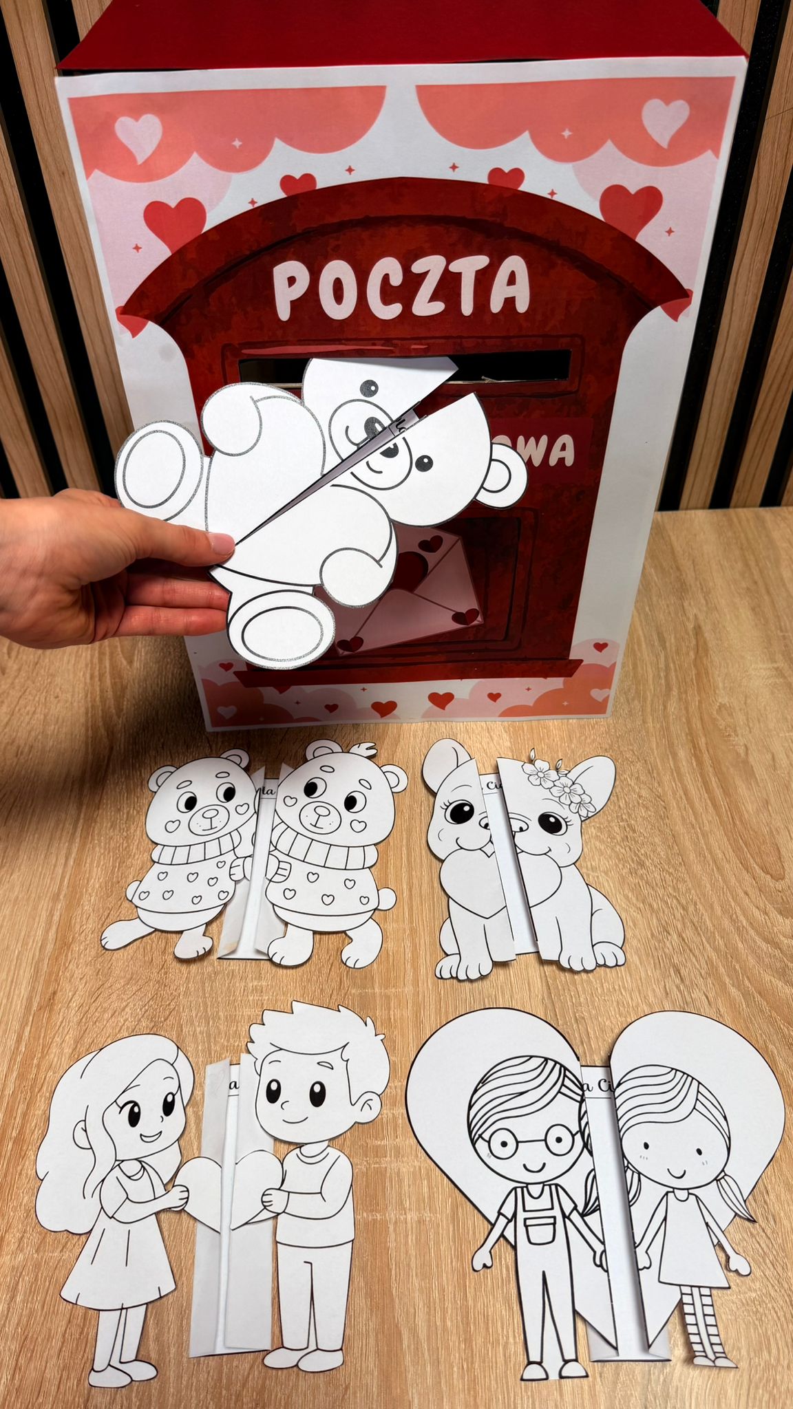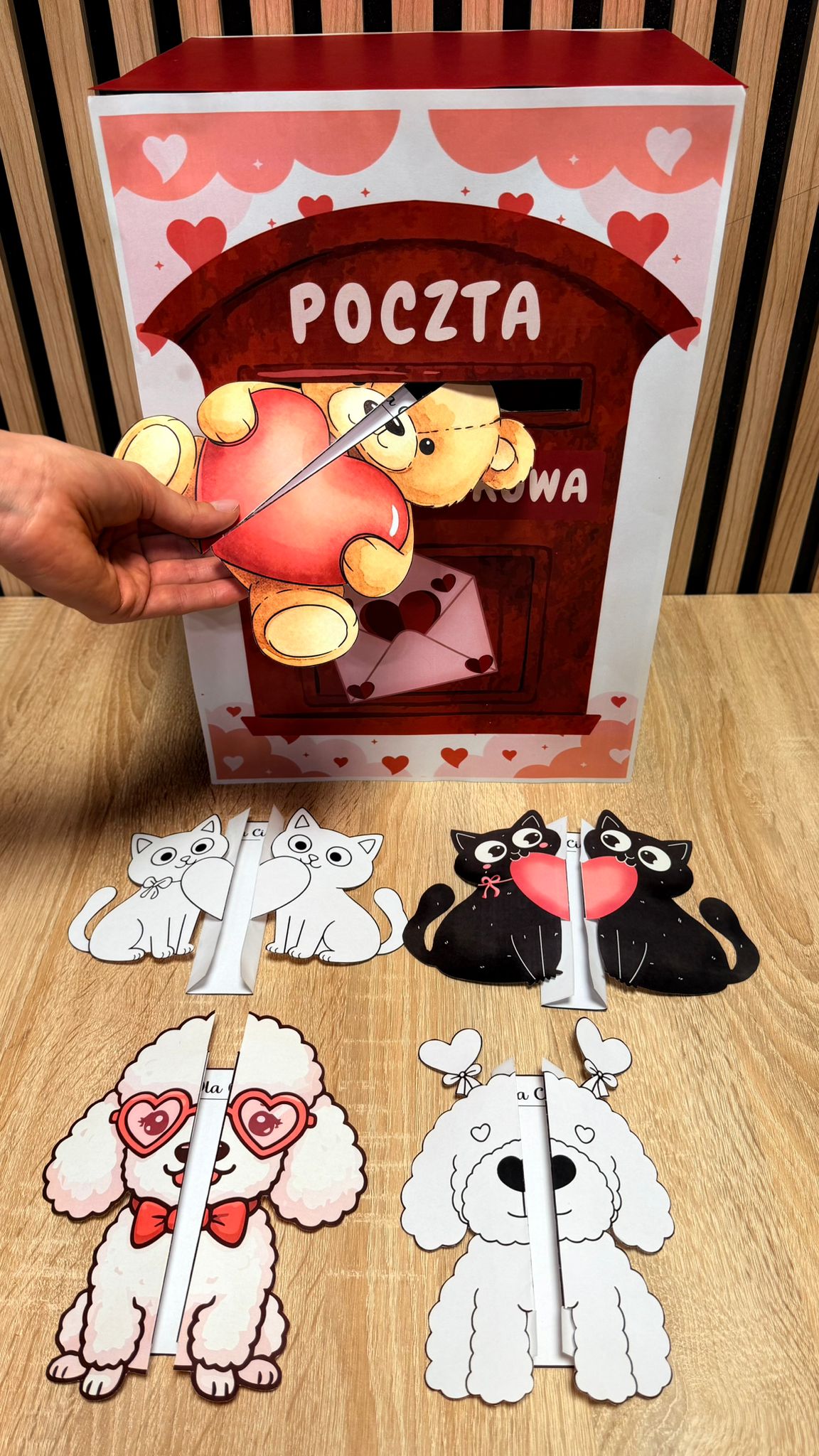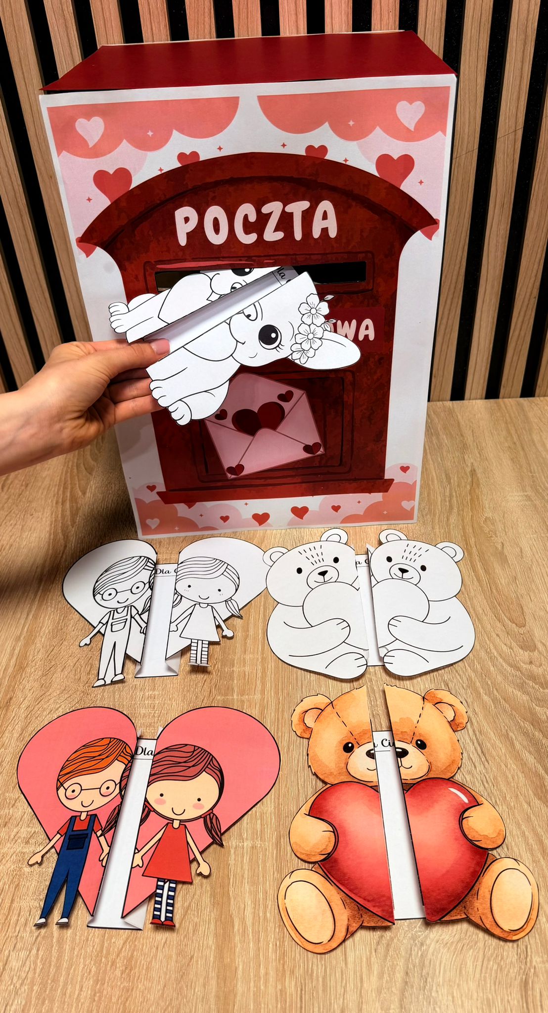 POCZTA WALENTYNKOWA SKRZYNKA + KARTKI SKŁADANKI 17 STRON