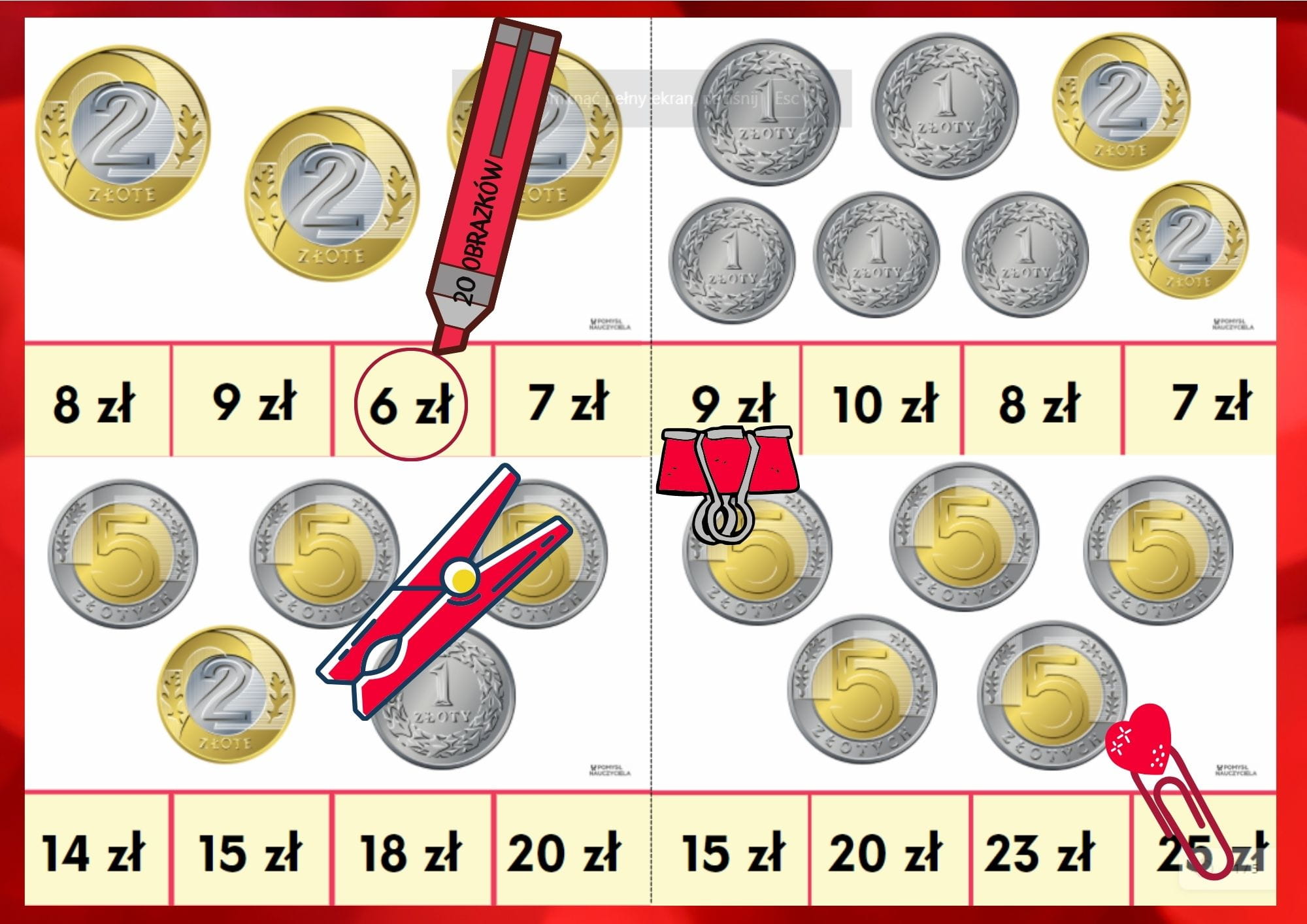 LICZYMY PIENIĄDZE- KARTY KLAMERKOWE