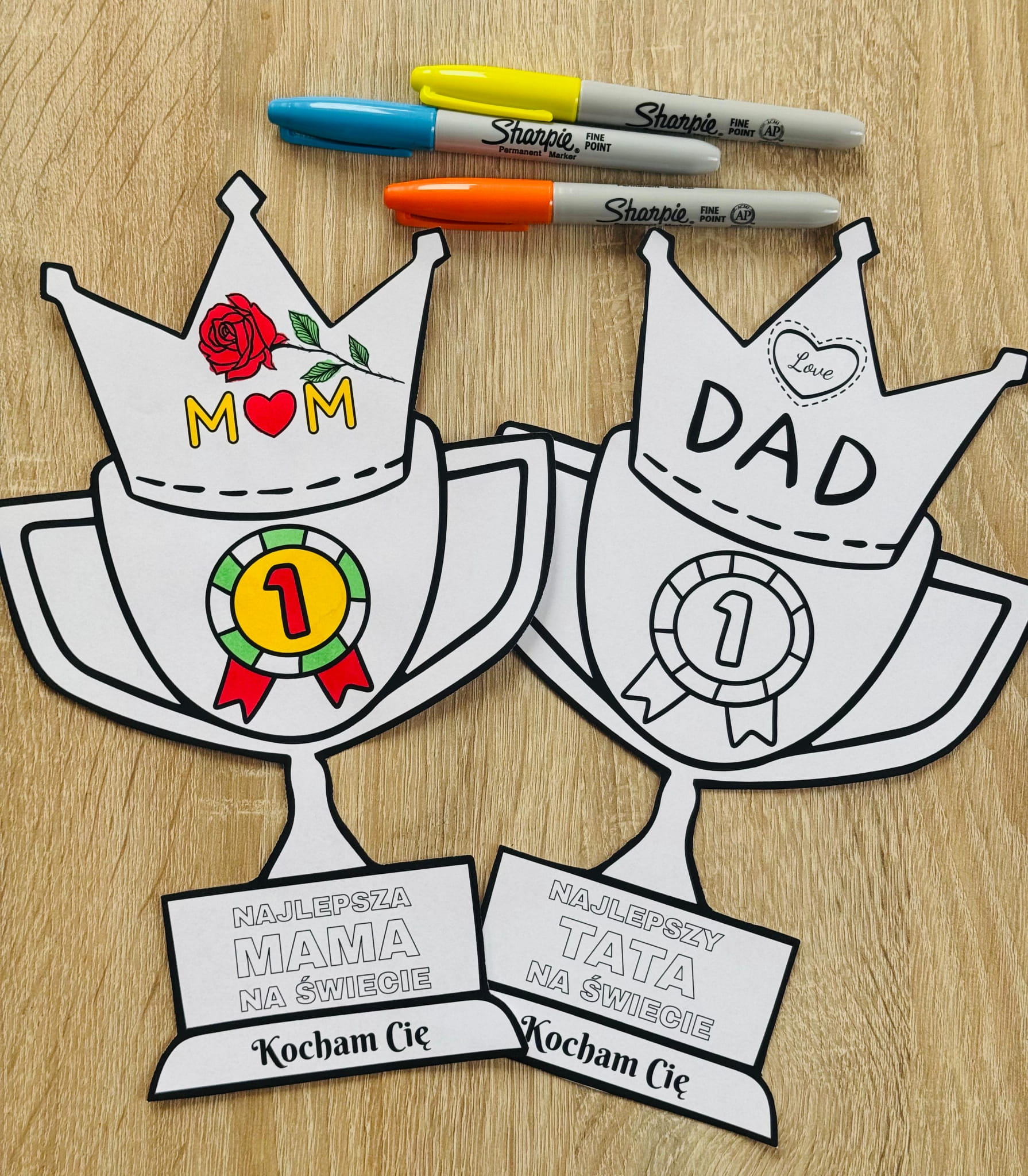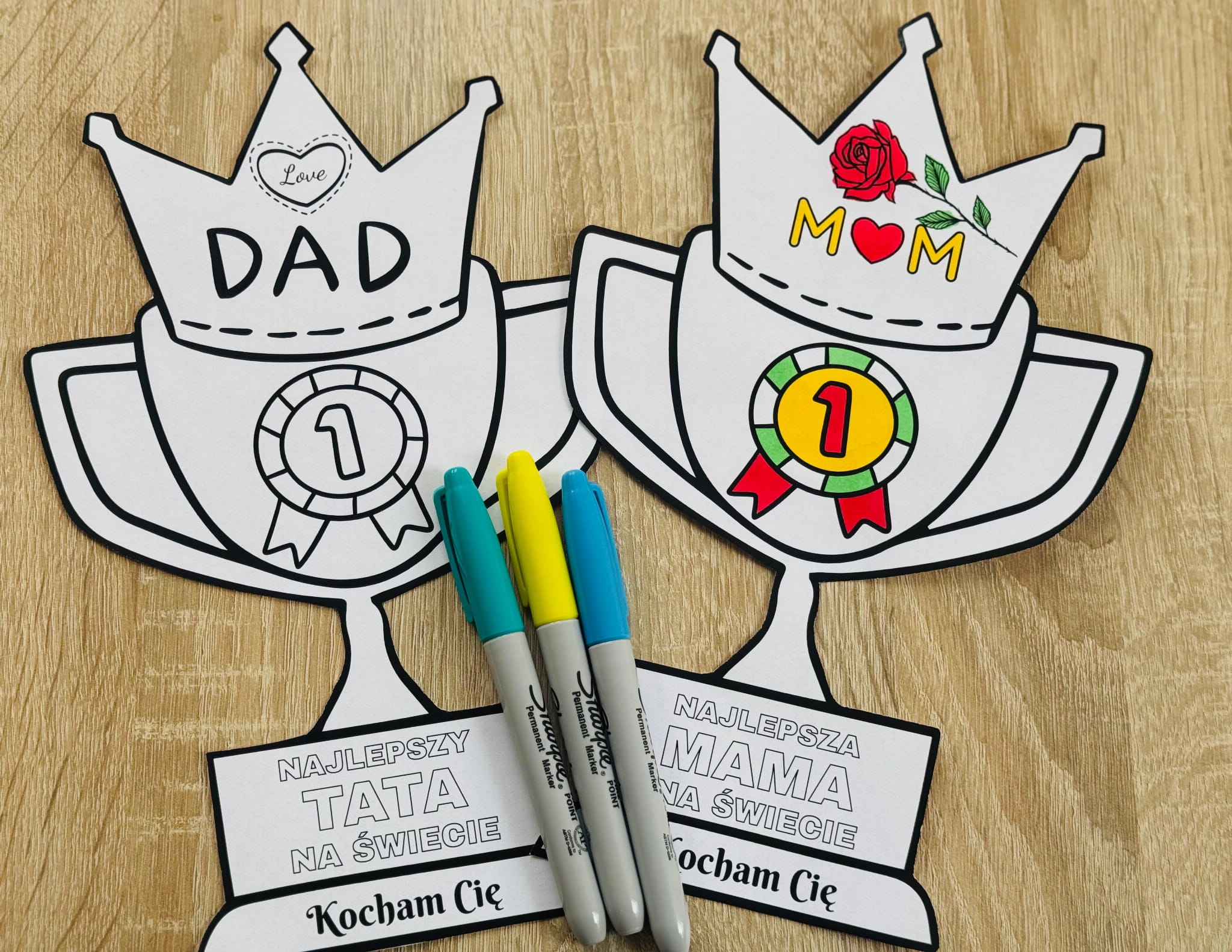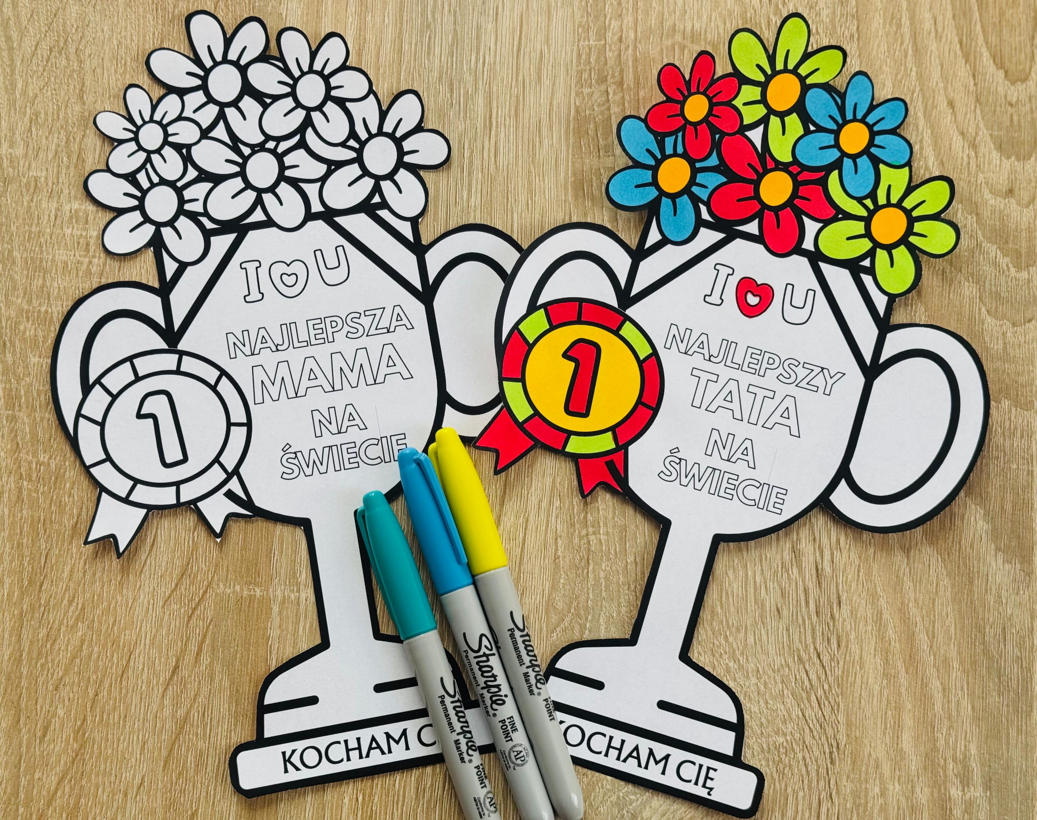 DZIEŃ MAMY I TATY - 4 ZESTAWY KART MANUALNYCH DO KOLOROWANIA, WYCINANIA I GRAFOMOTORYKI 90/A4