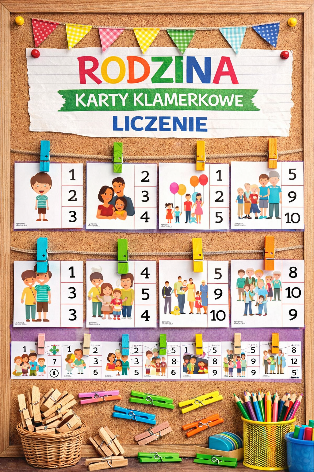 RODZINA KARTY KLAMERKOWE LICZENIE - 24 OBRAZKI