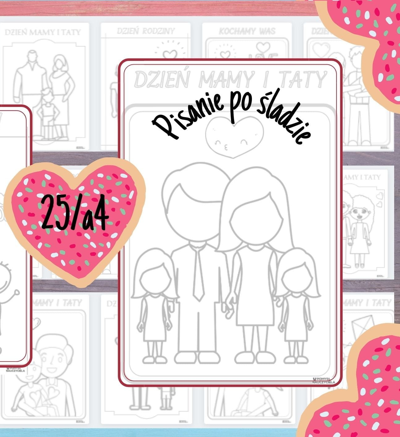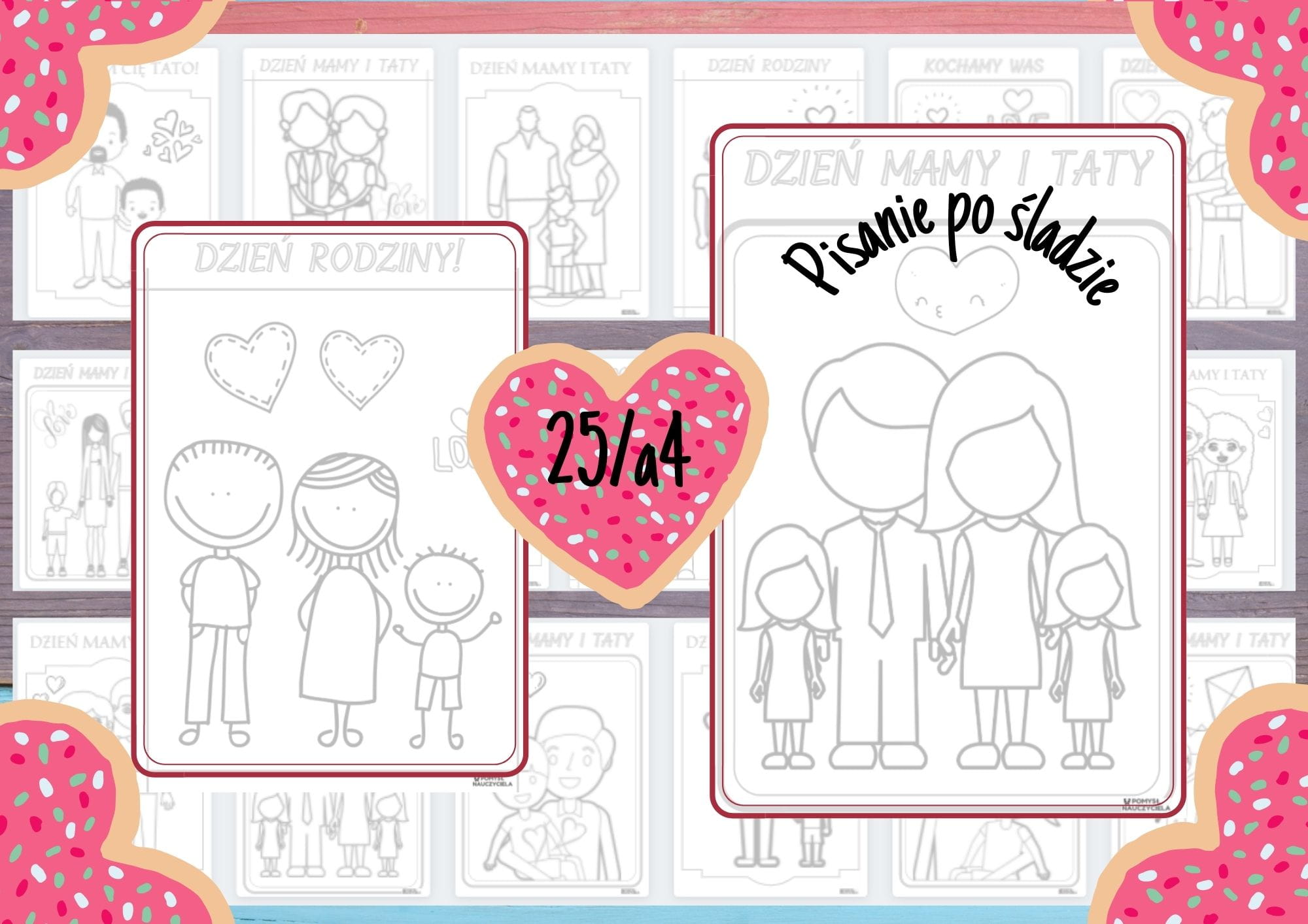 RODZINA - PISANIE PO ŚLADZIE, GRAFOMOTORYKA - 25 OBRAZKÓW