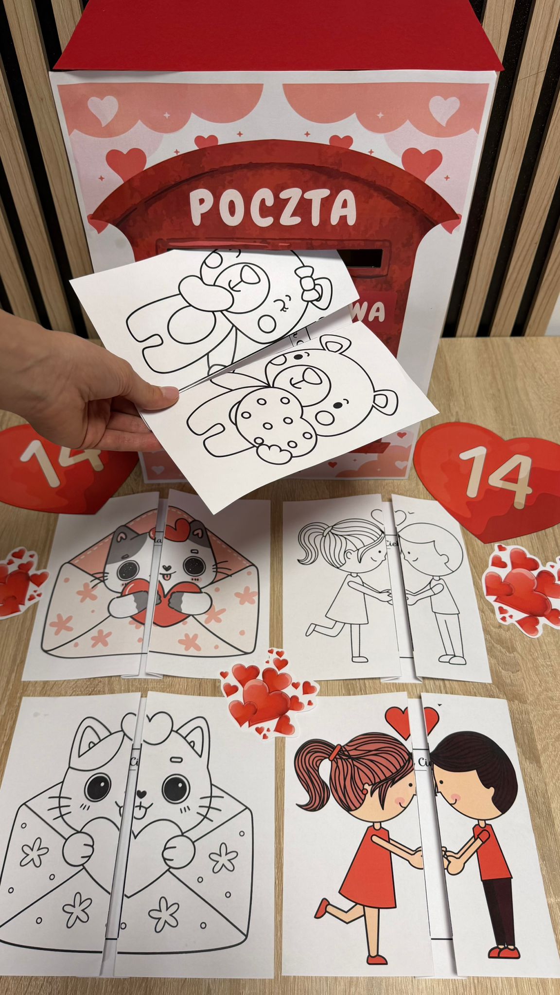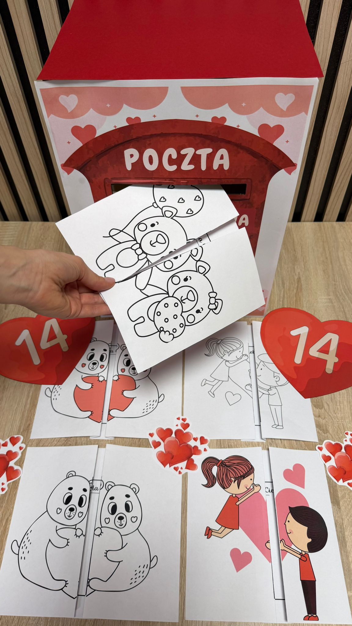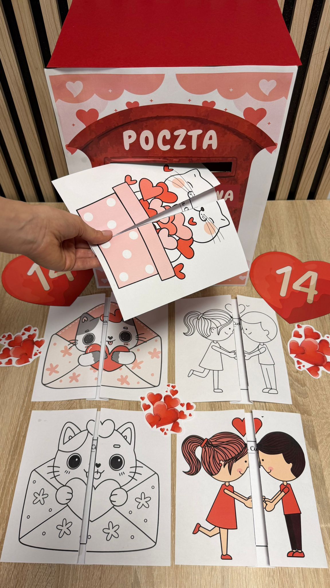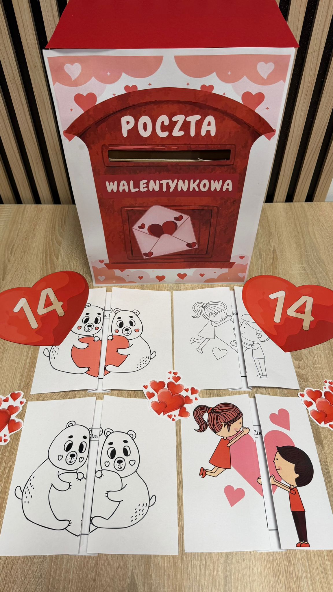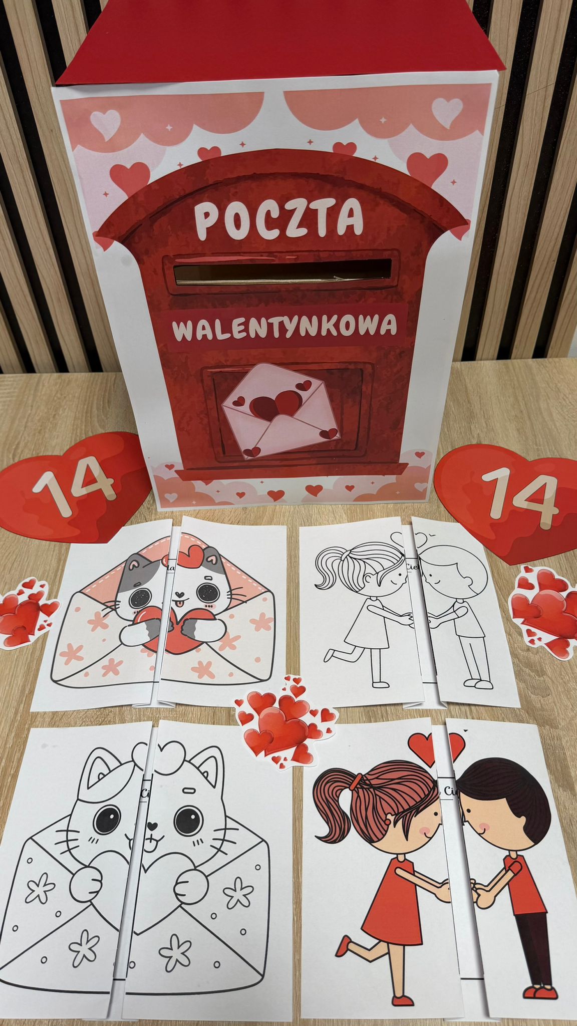 WALENTYNKOWA POCZTA SKRZYNKA + KARTKI SKŁADANKI 23 STRON