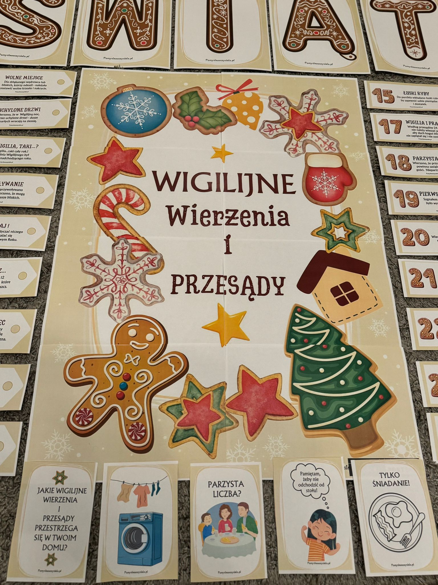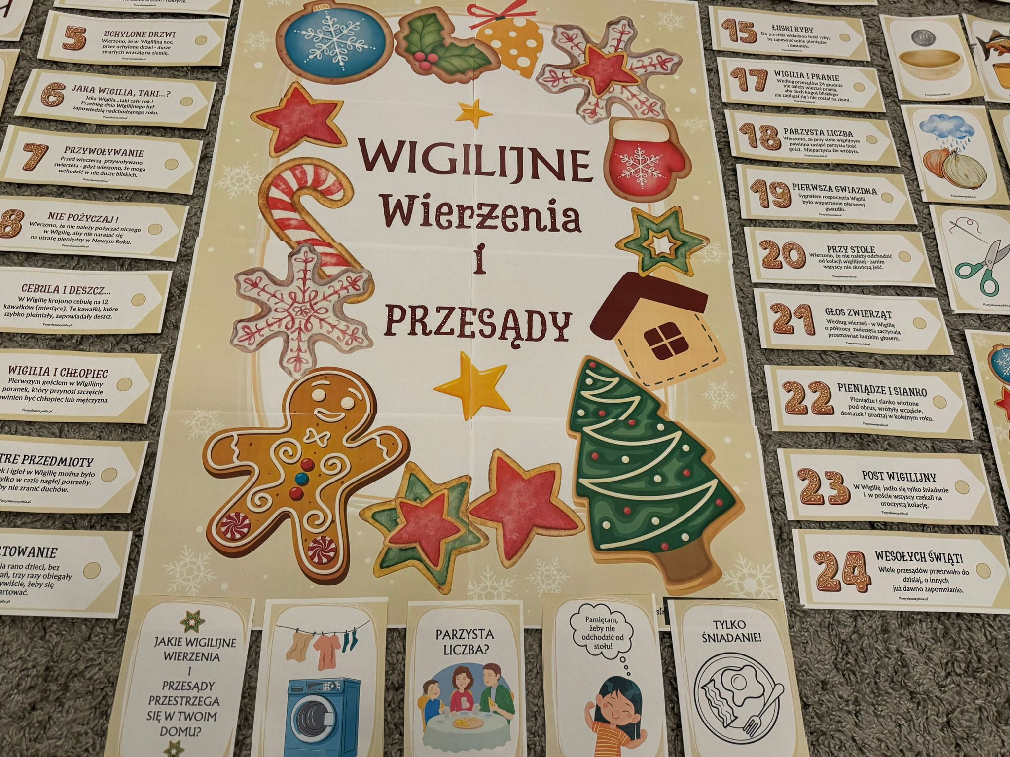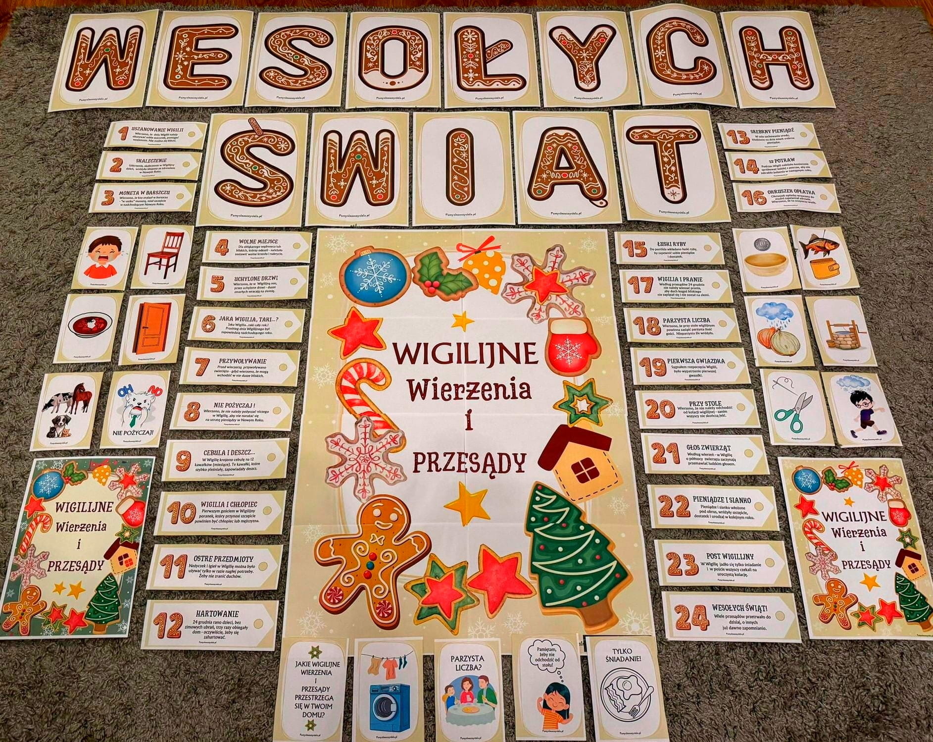 WIGILIJNE WIERZENIA I PRZESĄDY - WIEDZA W PIGUŁCE + PLAKATY XXL + NAPIS WESOŁYCH SWIĄT