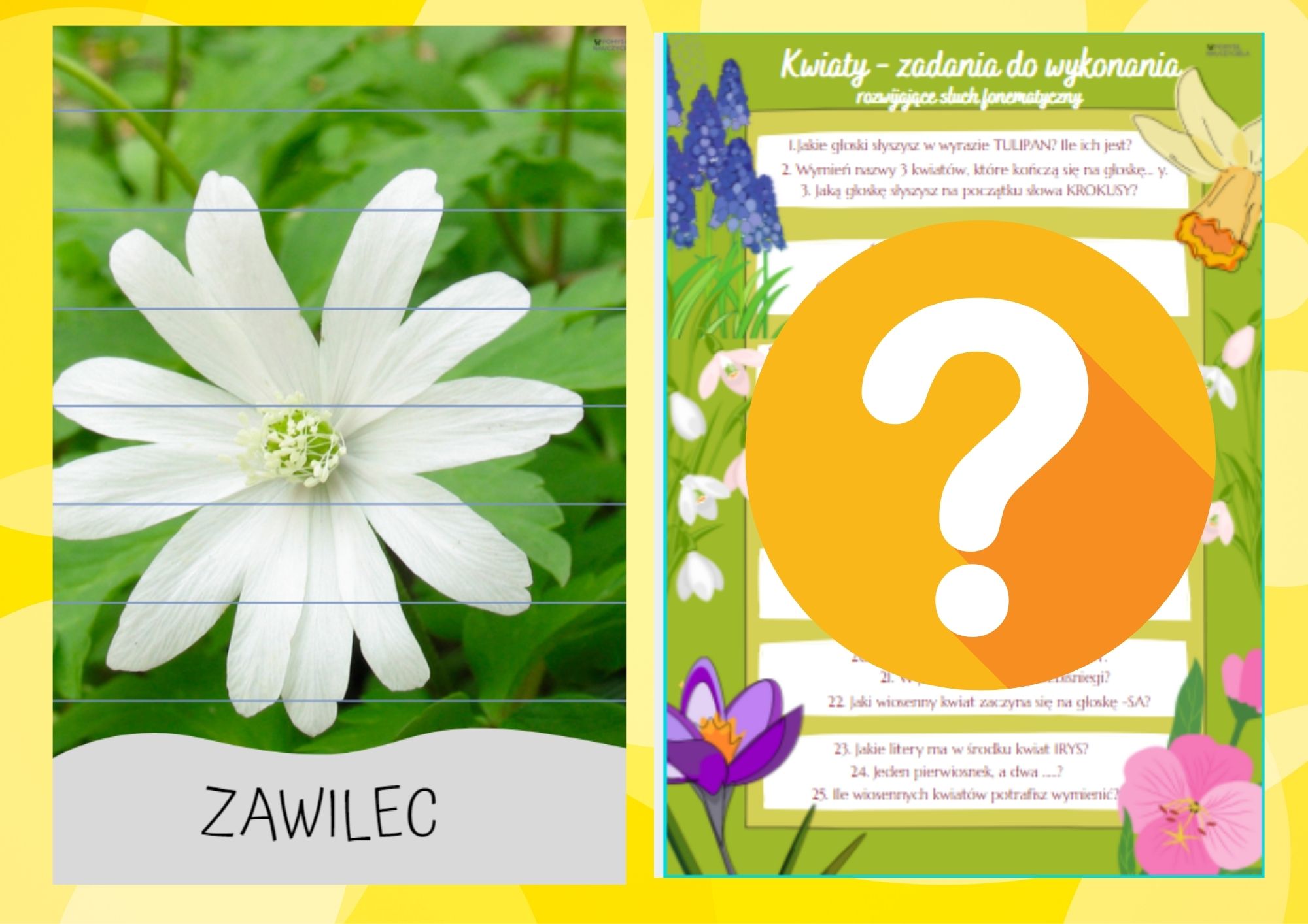 WIOSENNE KWIATY - ZABAWA Z KOSTKĄ + PUZZLE + ZADANIA