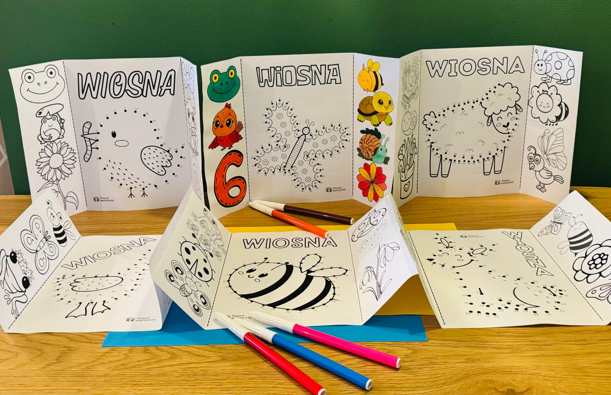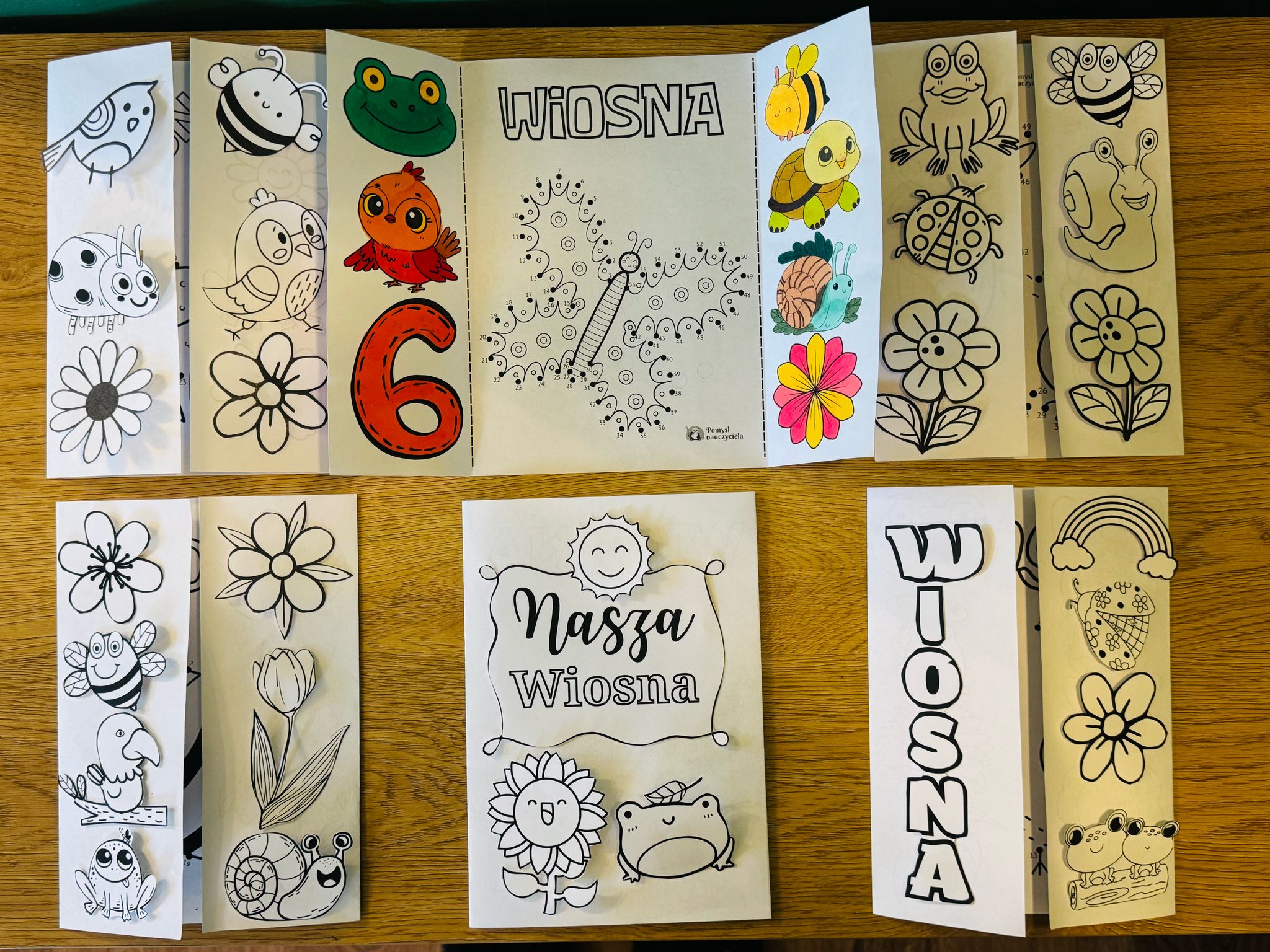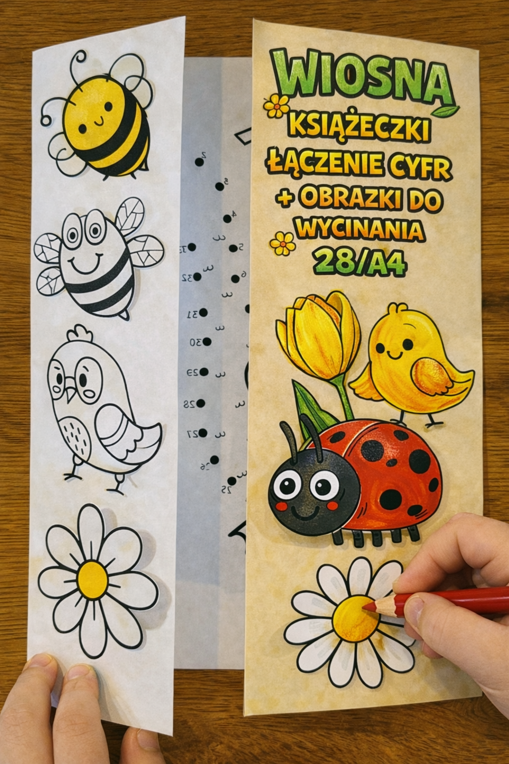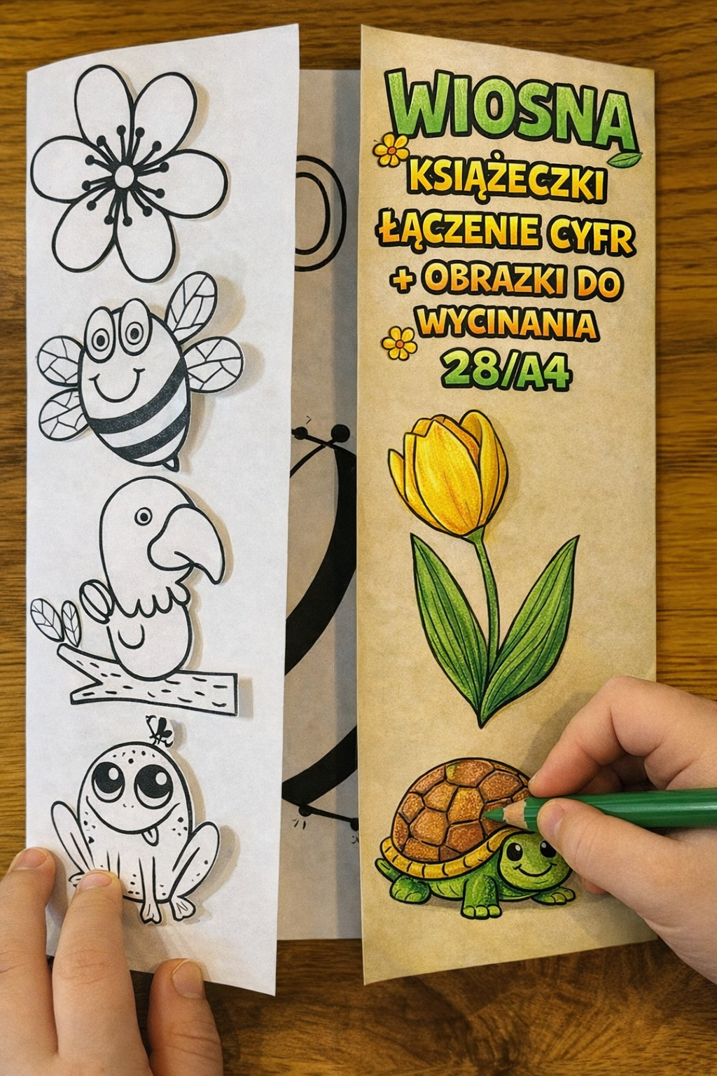 WIOSNA KSIĄŻECZKI DWUSTRONNE ŁĄCZENIE CYFR + OBRAZKI DO WYCINANIA 28/A4