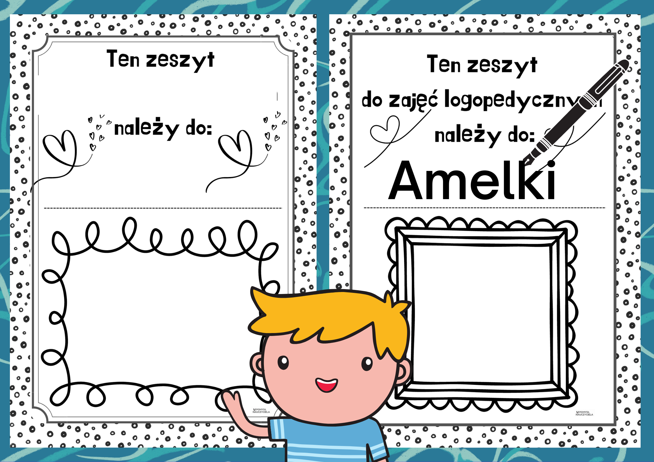 W zestawie znajdziesz 7 różnych wzorów wklejek do zeszytu logopedycznego lub innego zeszytu.