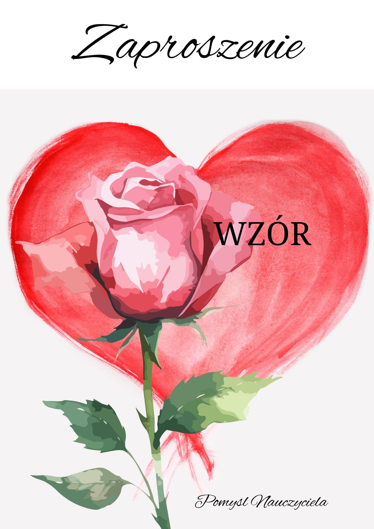 ZAPROSZENIE Z RÓŻOWĄ RÓŻĄ DO ODBICIA RĄCZKI DWUSTRONNE