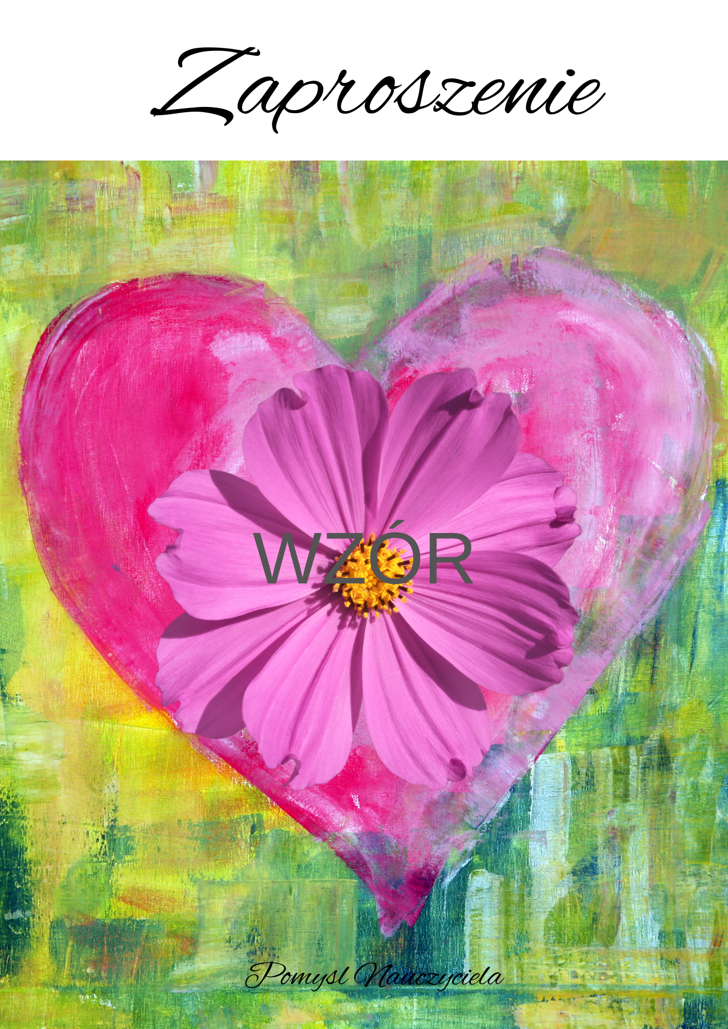 ZAPROSZENIE Z RÓŻOWYM KWIATKIEM DO ODBICIA RĄCZKI DWUSTRONNE