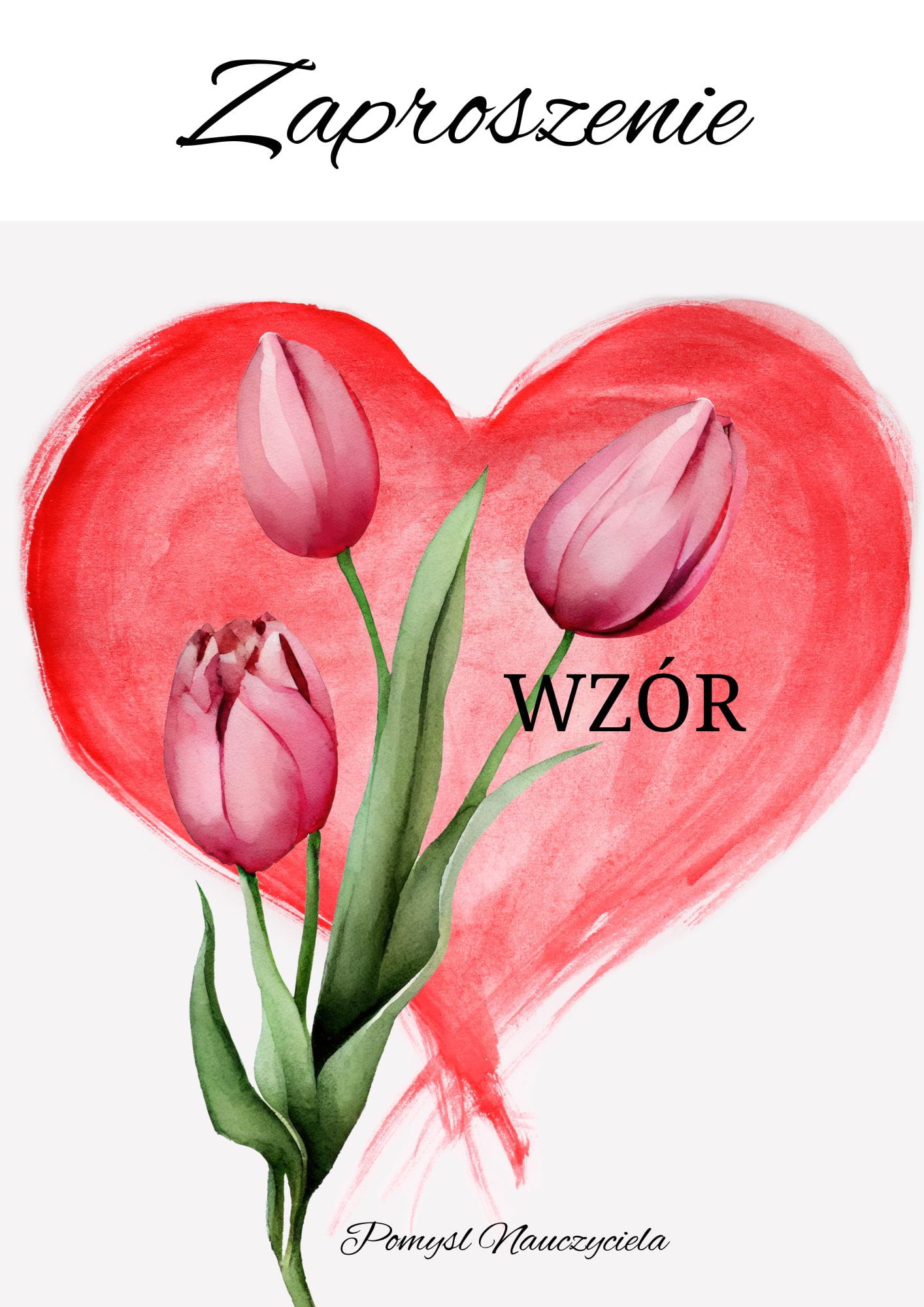 ZAPROSZENIE Z TULIPANAMI DO ODBICIA RĄCZKI DWUSTRONNE
