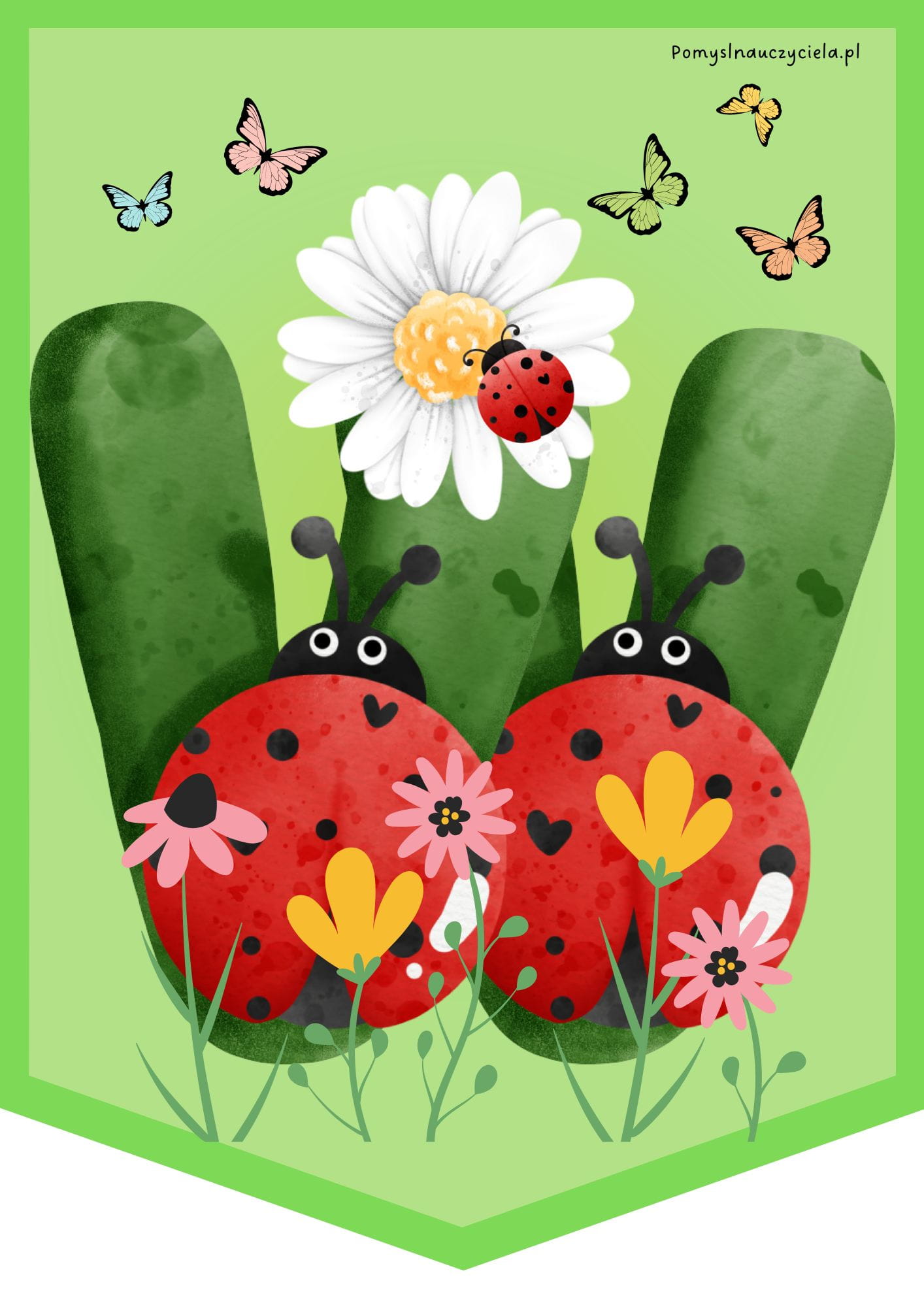 ZIELONY NAPIS WIOSNA Z BIEDRONKĄ