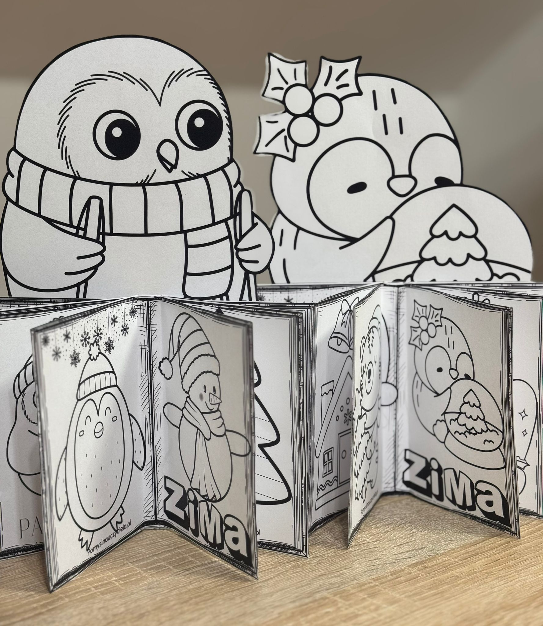 ZESTAW 214 POMOCE GOTOWE DO WYSYŁKI. POCZTA POLSKA. ZIMA KSIĄŻECZKI DO WYCINANIA I KOLOROWANIA 42/A4